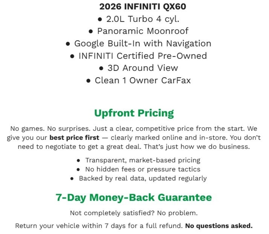 Recent Arrival! 2026 INFINITI QX60 LUXE Clean CARFAX. Graphite Shadow AWD 2.0L I4 MPI Turbocharged DOHC 16V 268hp