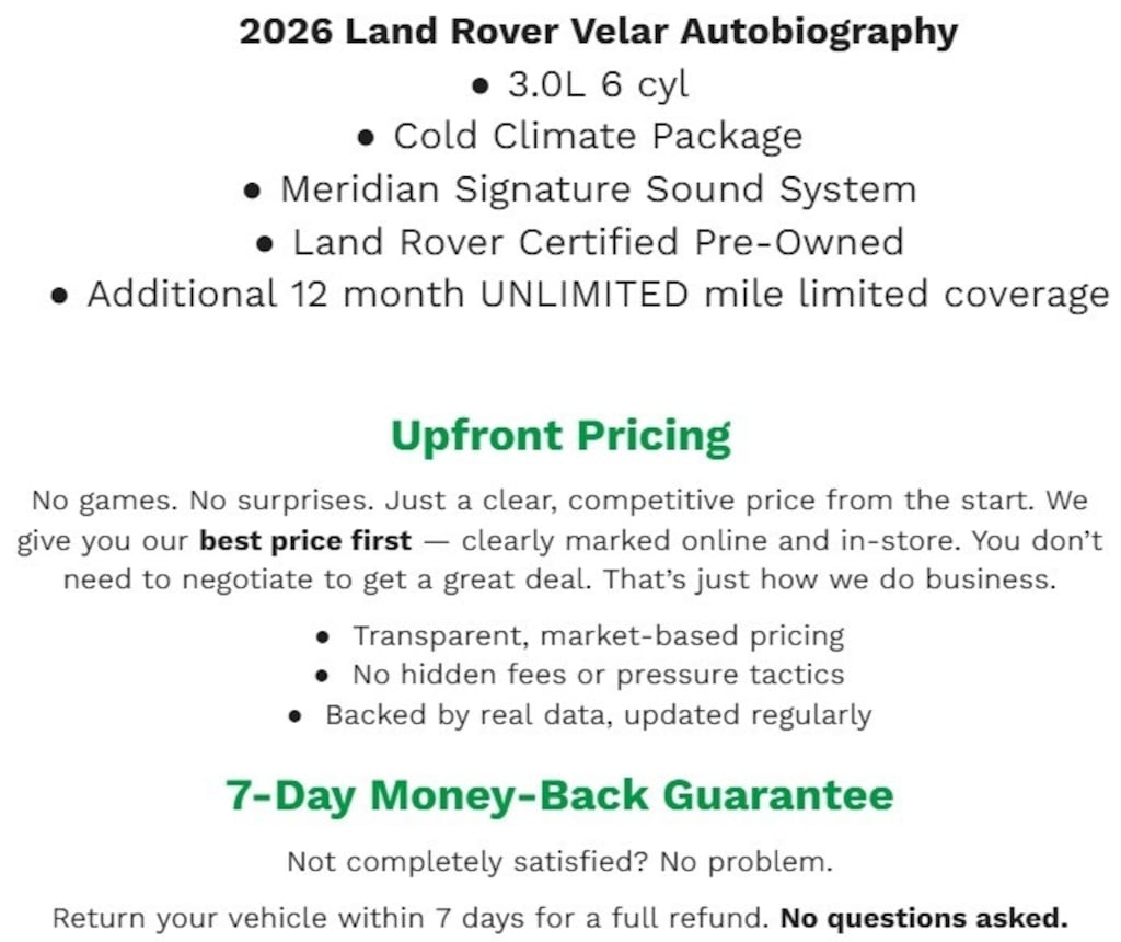 Recent Arrival! 2026 Land Rover Range Rover Velar Autobiography Clean CARFAX. Giola Green Metallic AWD 3.0L I6 Turbocharged